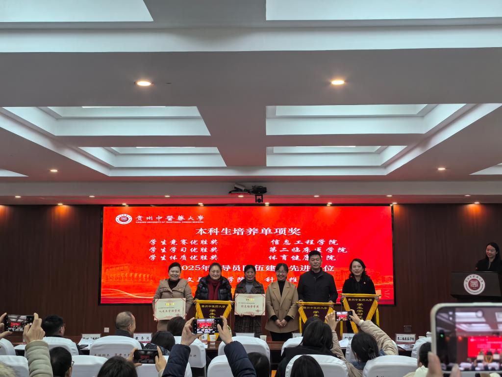 会上,学工部、研工部分别汇报了2025年学生工作总结及2026年工作要点。信息工程学院、第二临床医学院围绕“一院一品”建设,药学院围绕辅导员(班主任)工作室建设,第一临床医学院围绕学生应急处置工作,分别作了经验交流发言。会议宣读2025年学生工作表彰文件,通报2025年辅导员考核结果,对在征兵工作、升学就业、学风建设、学生培养等工作中表现获奖集体和优秀辅导员进行表彰。
