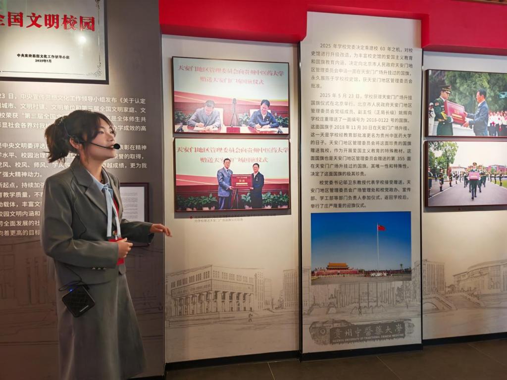 活动伊始,全体党员佩戴党徽有序到场,以严明纪律开启活动。在讲解员引导下,大家先走进校史馆的校史发展展区、校友纪念墙、自研药品展区,听校史讲解、观实物展品,沉浸式触摸学校不同时期的奋斗脉络,深刻体会“为党育人、为国育才”初心的代代传承。尤其是在编号2018-0122号的天安门国旗前,大家驻足良久--这面曾于2018年11月30日(学校更名贵州中医药大学当日)在天安门广场升挂的国旗,让在场每一个人都真切感受到荣誉背后的责任与分量。