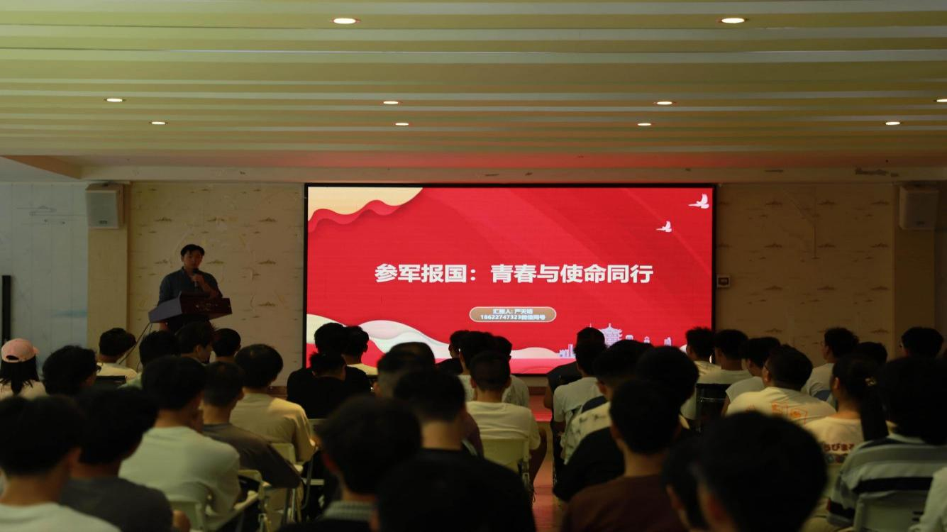 为进一步做好学生的国防教育,激发学生参军入伍热情,坚定新青年爱国之心,增强携笔从戎报效祖国使命感,10月10日,党委学工部举行“参军报国:青春与使命同行”征兵宣讲活动各学院160余名学生参加。