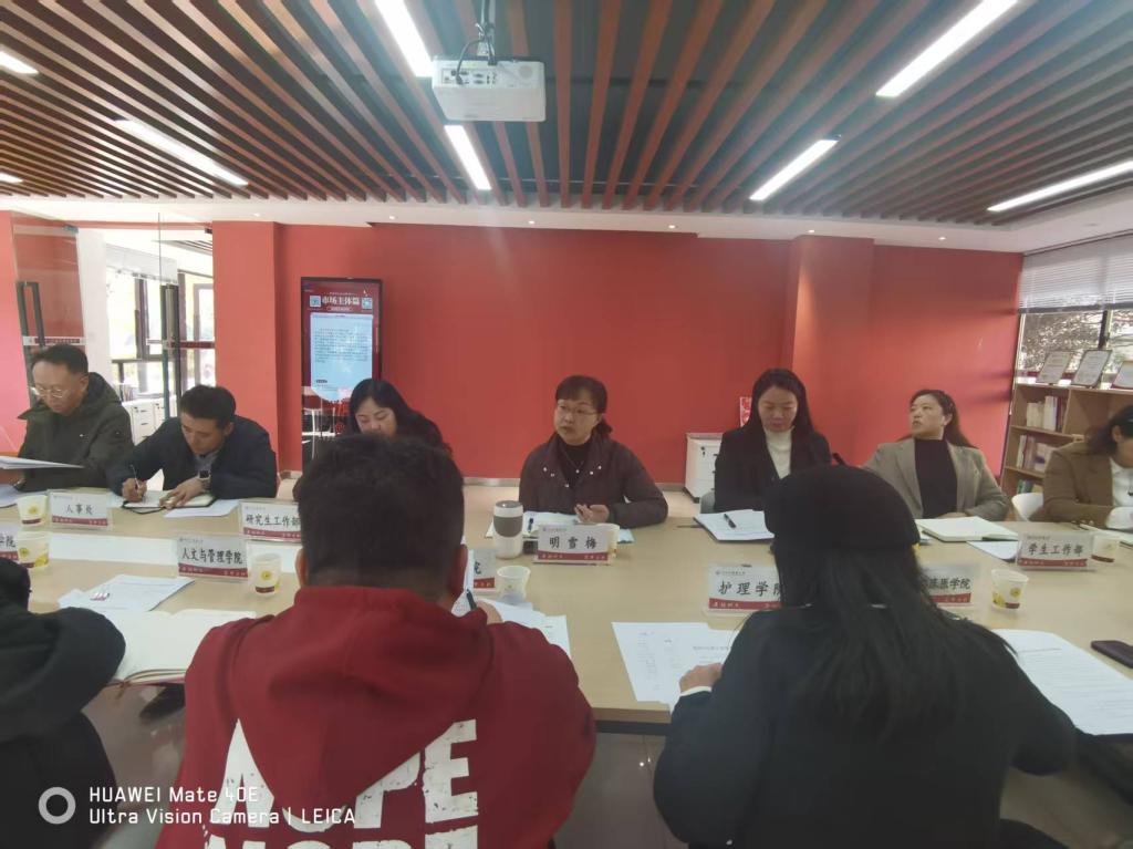 11月25日下午,我校辅导员工作座谈会在橘井“一站式”学生社区党团活动室召开。校党委副书记明雪梅出席会议并讲话,党委学生工作部、党委研究生工作部、人事处(党委教师工作部)相关负责人,各学院分管学生工作副书记、辅导员工作室主持人参会。