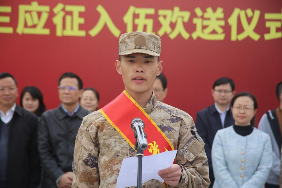 针灸推拿学院的吴厚松作为新兵代表上台发言,他深情感恩母校的悉心培育,并庄严承诺,将在军营中淬炼意志、苦练本领,努力成长为对社会,对国家有用的人。