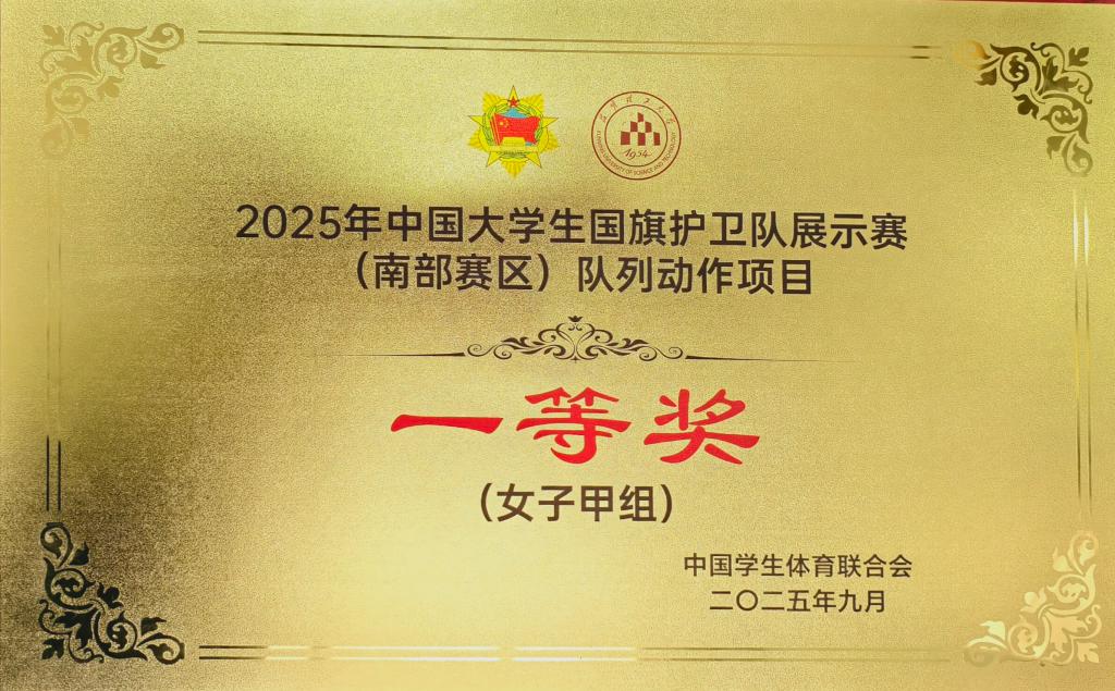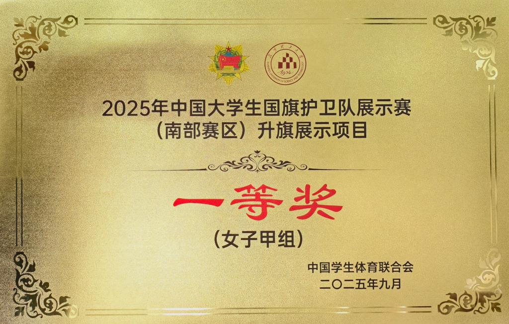 9月18日至23日,2025年中国大学生国旗护卫队展示赛(南部赛区)在昆明理工大学如期举办,我校女子国旗护卫队代表学校参赛。